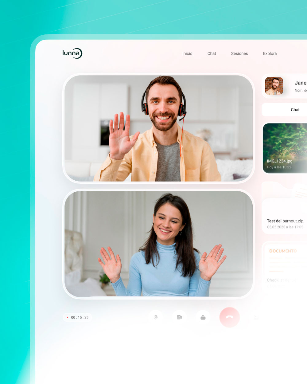Lunna ofrece a cada usuario acceso inmediato a profesionales colegiados. Sin esperas. Sin prejuicios. Sin papeleo. Solo ayuda real, cuando la necesitan.